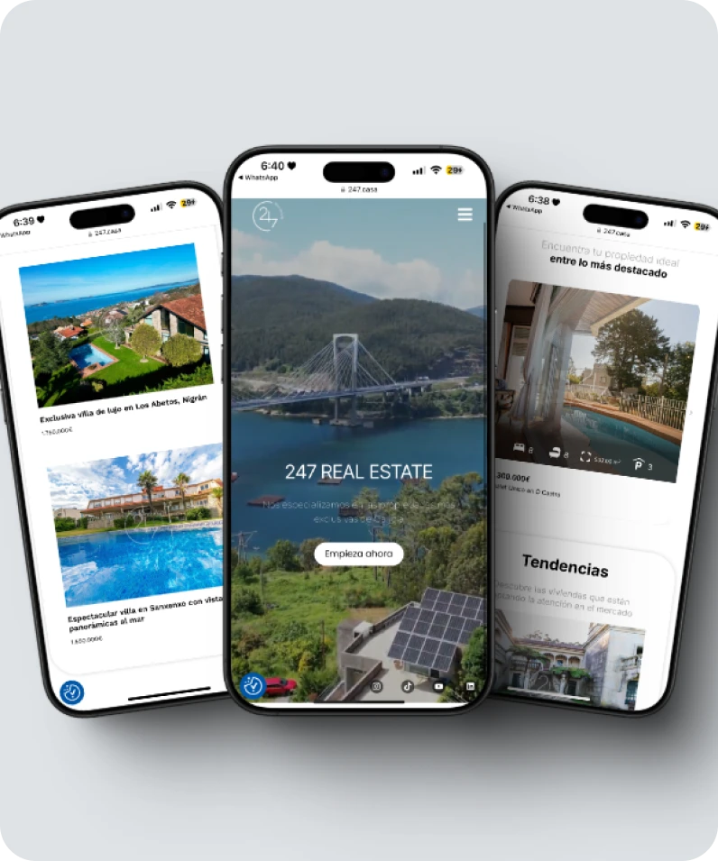 La web de 247 Real Estate fue desarrollada en Wordpress con diseño a medida UI/UX, el cual cuenta con un enfoque en la usabilidad y un diseño moderno, al mismo tiempo está sincronizado con CRM, la plataforma cuenta con una sección destacada para calcular el precio del inmueble, una herramienta eficaz que facilita estimaciones precisas y mejora la experiencia del usuario en el sector inmobiliario, estimulando así el proceso de compra.